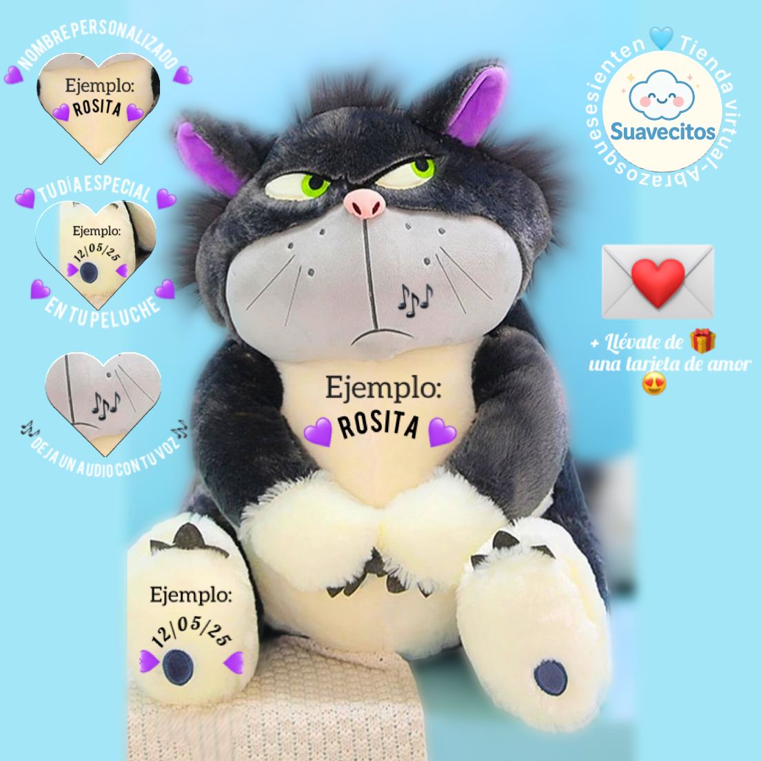 Con su carita pícara y su estilo único, este gatito es perfecto para cualquier persona que ame los peluches con personalidad.